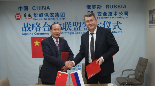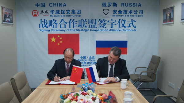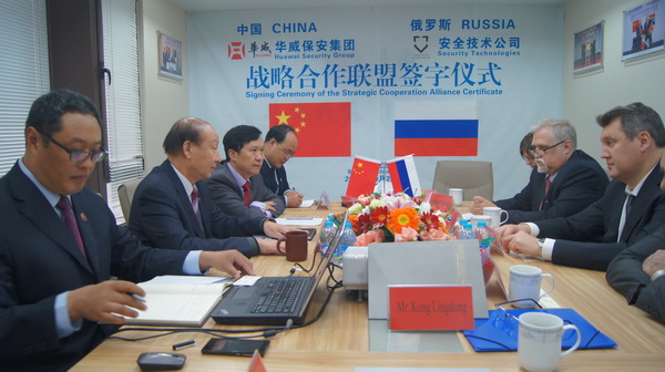 10月29日,山東華威保安集團(tuán)與俄羅斯國(guó)家技術(shù)集團(tuán)安全技術(shù)公司在北京簽訂戰(zhàn)略合作協(xié)議。公司董事長(zhǎng)、總裁荀金慶、獨(dú)立董事、高級(jí)顧問(wèn)蔣曉明、總裁助理孔令東、行政總監(jiān)仙文與俄技集團(tuán)安全技術(shù)公司總經(jīng)理符拉迪米爾·卡皮絲、俄技集團(tuán)保安司司長(zhǎng)米克黑爾·米圖伊克、俄技集團(tuán)駐華總代表、俄羅斯駐華商務(wù)副代表阿列克賽·格利申、俄技北京代表處首席工程師德米特里伊·雷日托夫等人共同出席了簽約儀式。